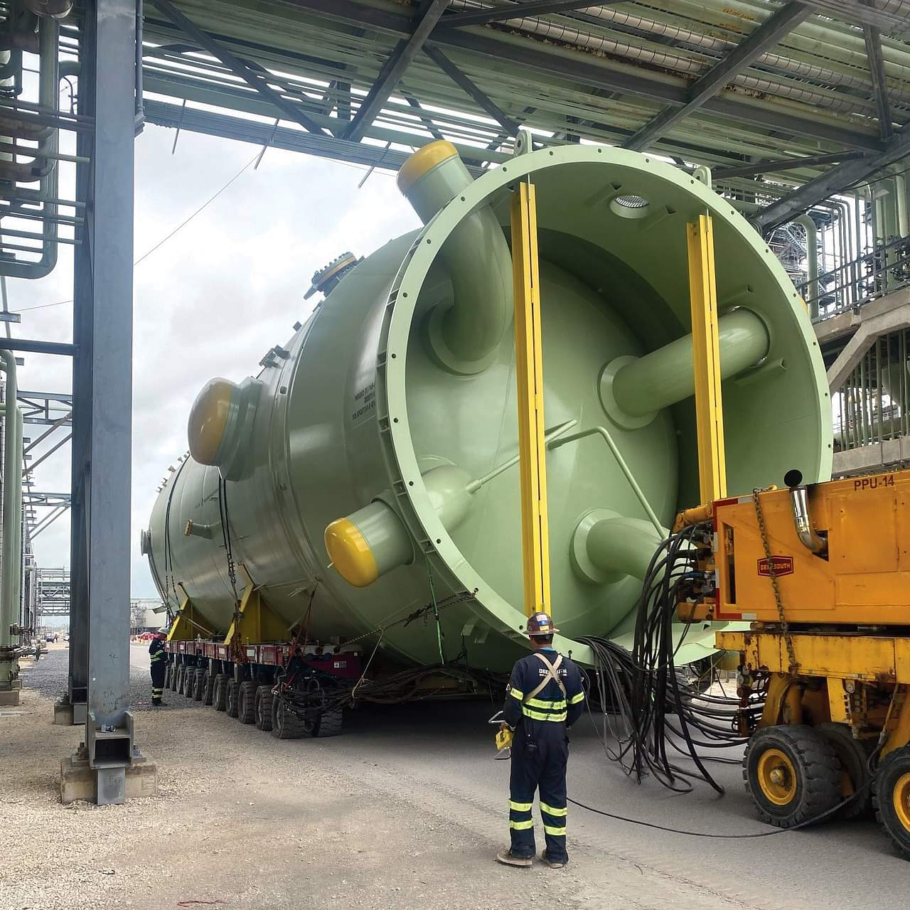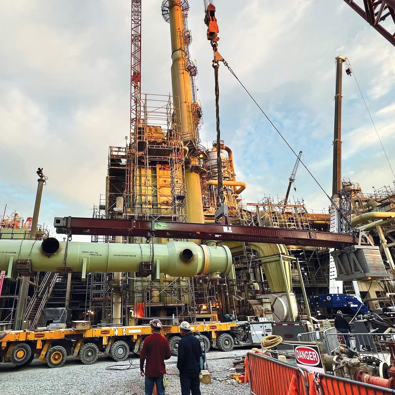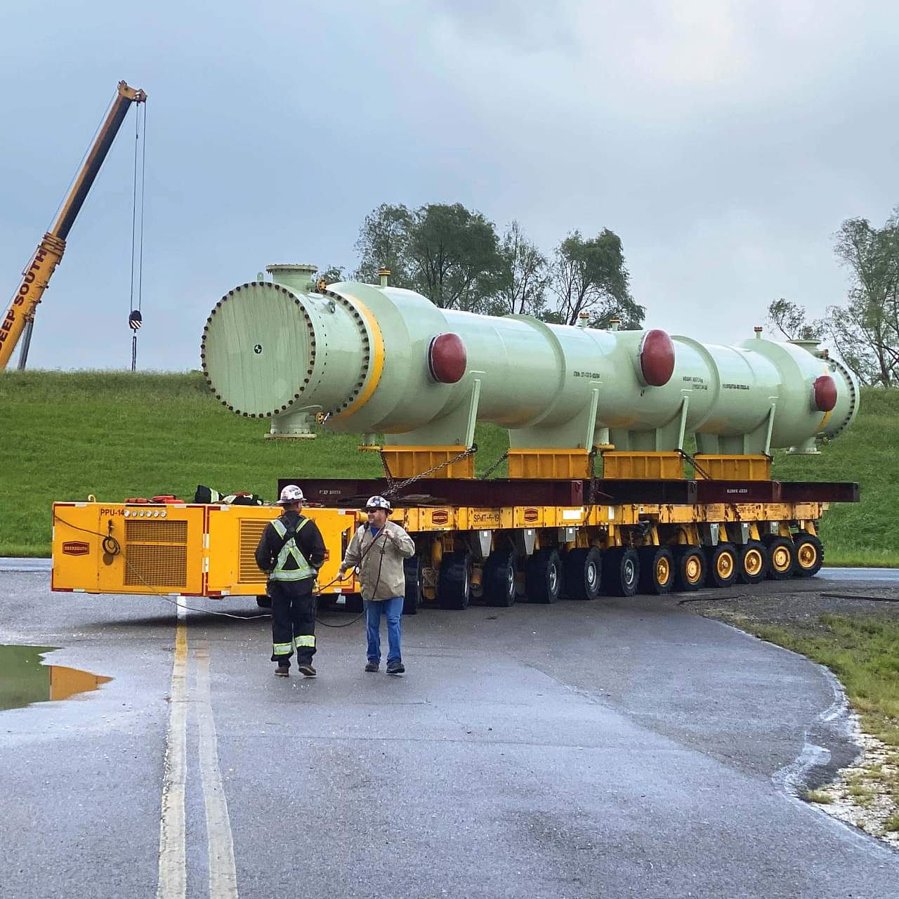 In support of an alkylation revamp, an industrial customer needed acid coolers, an acid settler, and various piping components transported to the plant and then lifted into place.