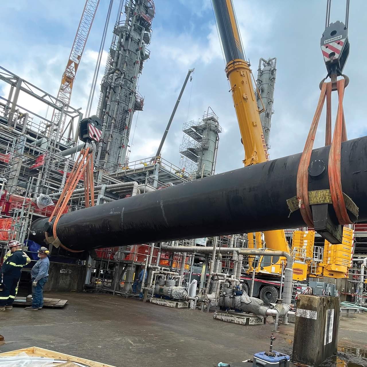 The original plan called for 800-ton gantries to complete the lifts. But when those became unavailable due to delays, the project faced the risk of falling behind. With turnaround timelines, even a short delay can quickly turn into weeks of lost time and added cost.